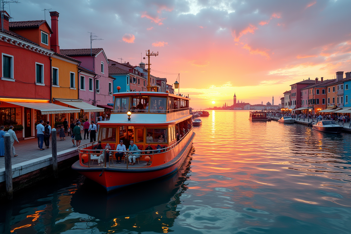 N’oubliez pas la météo. Même en plein été, la brise marine peut surprendre. Préparez une veste légère, un chapeau, une bouteille d’eau : trois basiques pour aborder la traversée sereinement. Les vues offertes depuis le pont valent chaque minute passée sur l’eau. Lorsque le soleil décline, la lagune s’embrase, et le retour vers Venise prend une dimension presque irréelle. Le dernier vaporetto du soir, c’est toujours un peu plus qu’un simple moyen de transport : un moment suspendu, entre deux rives, à savourer sans regarder la montre.