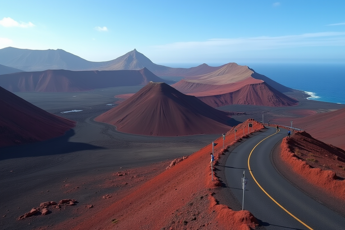 À Lanzarote, l’œil se pose sur des paysages qui ne ressemblent à rien d’autre. Au large du Maroc, cette île des Îles Canaries dévoile une mosaïque de paysages volcaniques où la force de la nature s’affirme sans filtre. Le parc national de Timanfaya, joyau de l’île, impose sa silhouette tourmentée : cratères noircis, coulées de lave figées, un décor brut où chaque pas rappelle les éruptions qui ont bouleversé l’île au XVIIIe siècle. Les contrastes frappent : plages dorées de Papagayo ou d’El Golfo, falaises sombres, océan bleu profond.