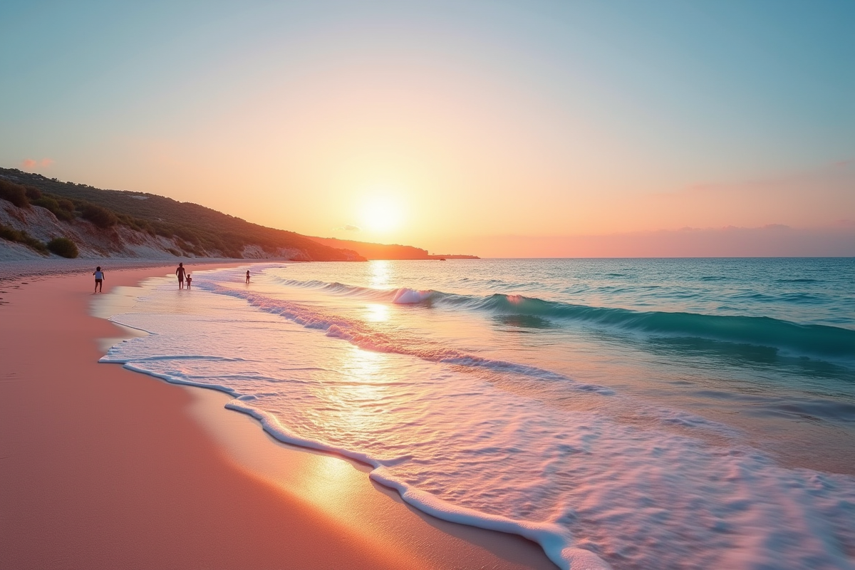 Située à l’extrémité sud-ouest de la Crète, la plage d’Elafonissi est célèbre pour son sable rose, une rareté qui attire les visiteurs du monde entier. Ce phénomène naturel résulte de la présence de fragments de coquillages rouges et roses, créant un contraste saisissant avec le bleu turquoise de l’eau. Elafonissi est séparée de l’île principale par un lagon peu profond, accessible à pied lors des marées basses, offrant une expérience unique de traversée.